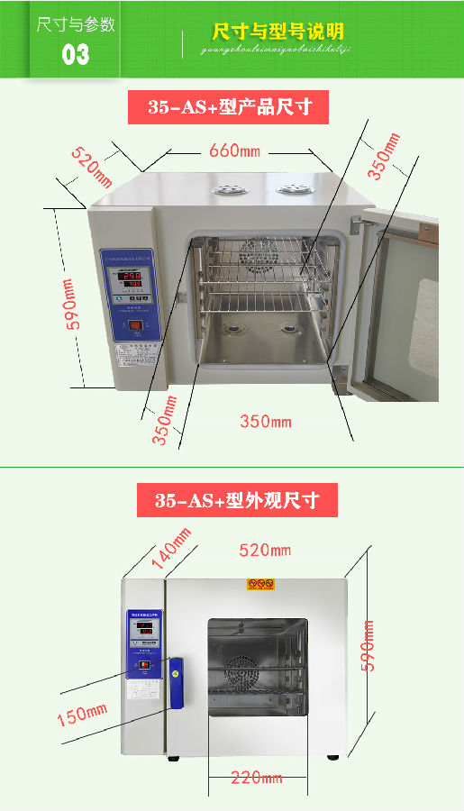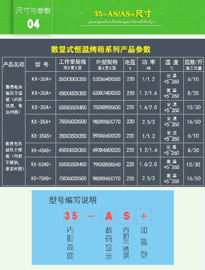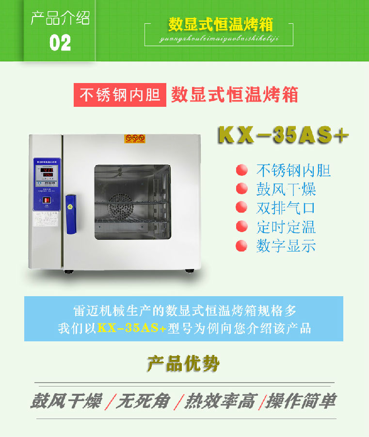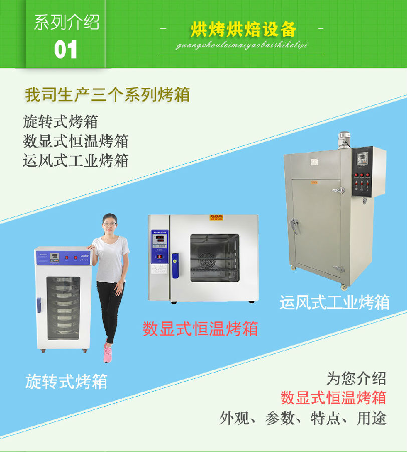 數顯式烤箱工作室后部裝有發熱管,后面裝有鼓風裝置,溫度控制儀控制溫度恒定及高低,工作時經發熱管加熱再經鼓風裝置循環流動,確保溫度均勻,四周圓弧設計,擱板上下間距可調,內置感溫探頭。